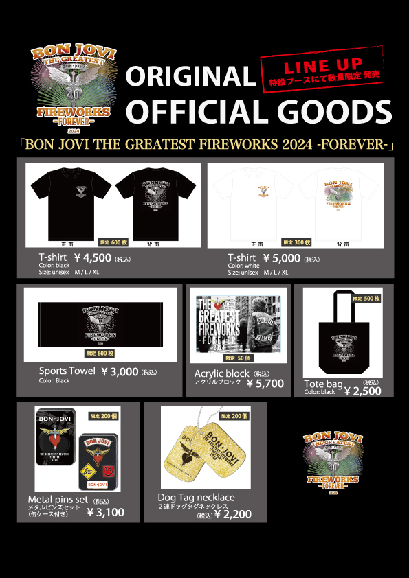 【BONJOVI(ボンジョビ)花火大会幕張2024】では、同イベントオリジナルのオフィシャルグッズが販売されています。