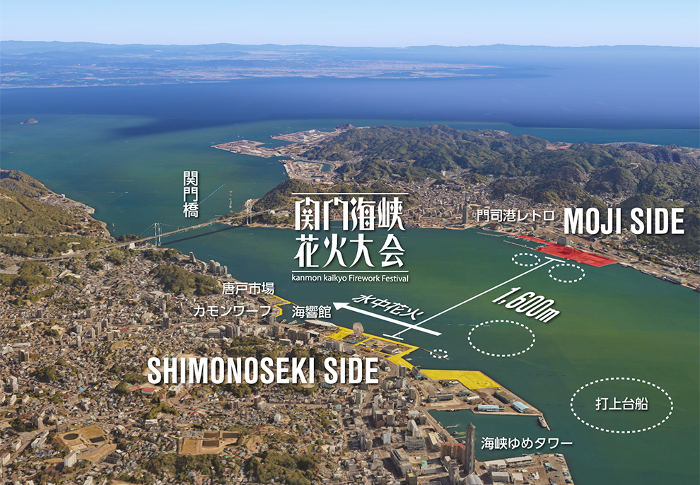 同イベントは、山口県下関市と福岡県北九州市門司区の関門海峡両岸で行われる花火大会です。