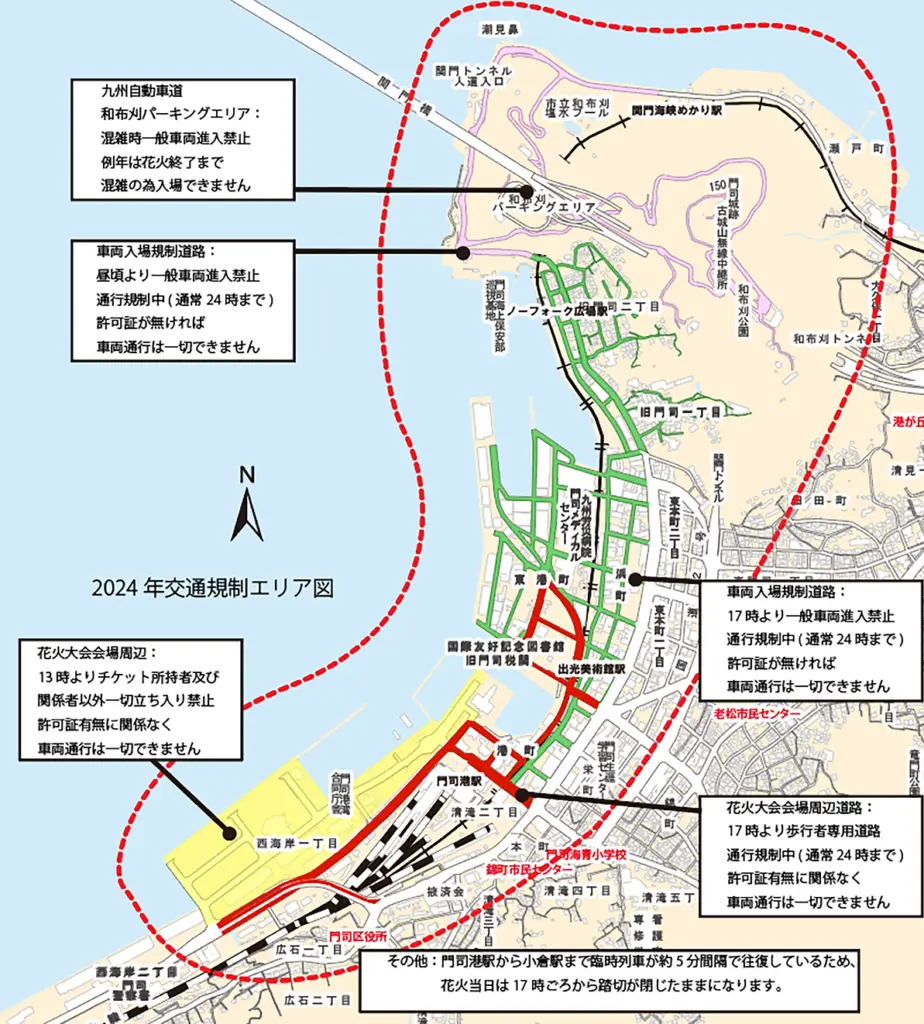 【関門海峡花火大会2024】では、会場周辺で大規模な交通規制が行われます。